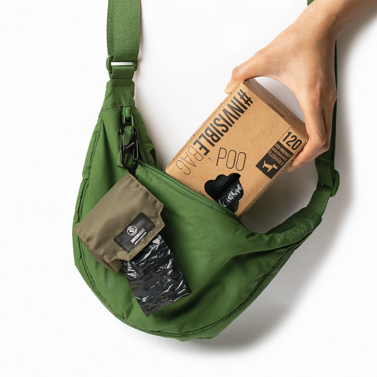 Each box comes with 12 rolls (120 bags), enough to last for 2-4 months (depending on how regular your furry friend goes to poop). Plus, a locally made trash bag holder made of deadstock fabric is also available to clip onto your leash!