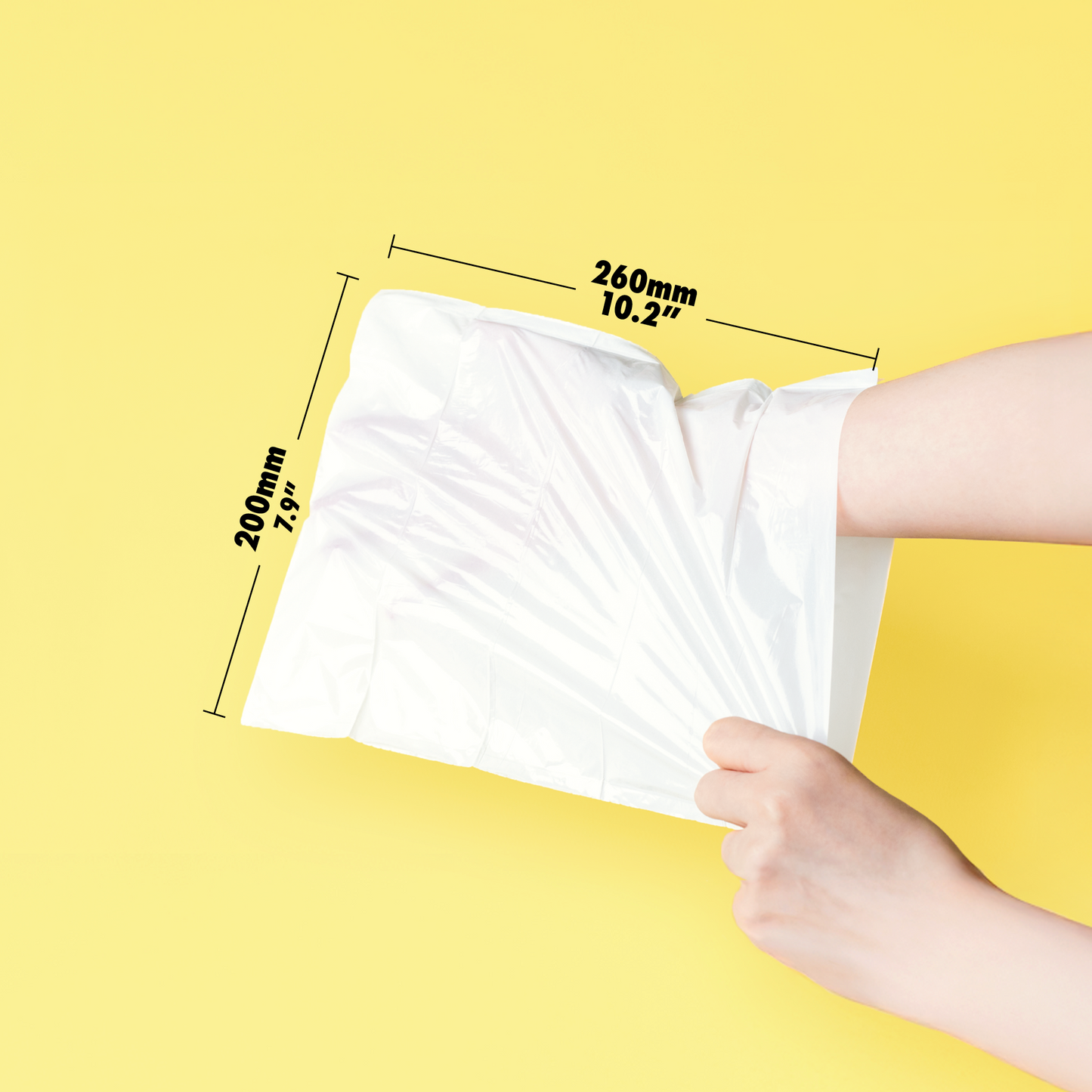 #INVISIBLEPOOBAG is dissolvable, which almost instantly dissolves in water that is above 65°C; or slowly dissolves under a lower temperature. Do not tie and knot before flushing. One bag at a time.