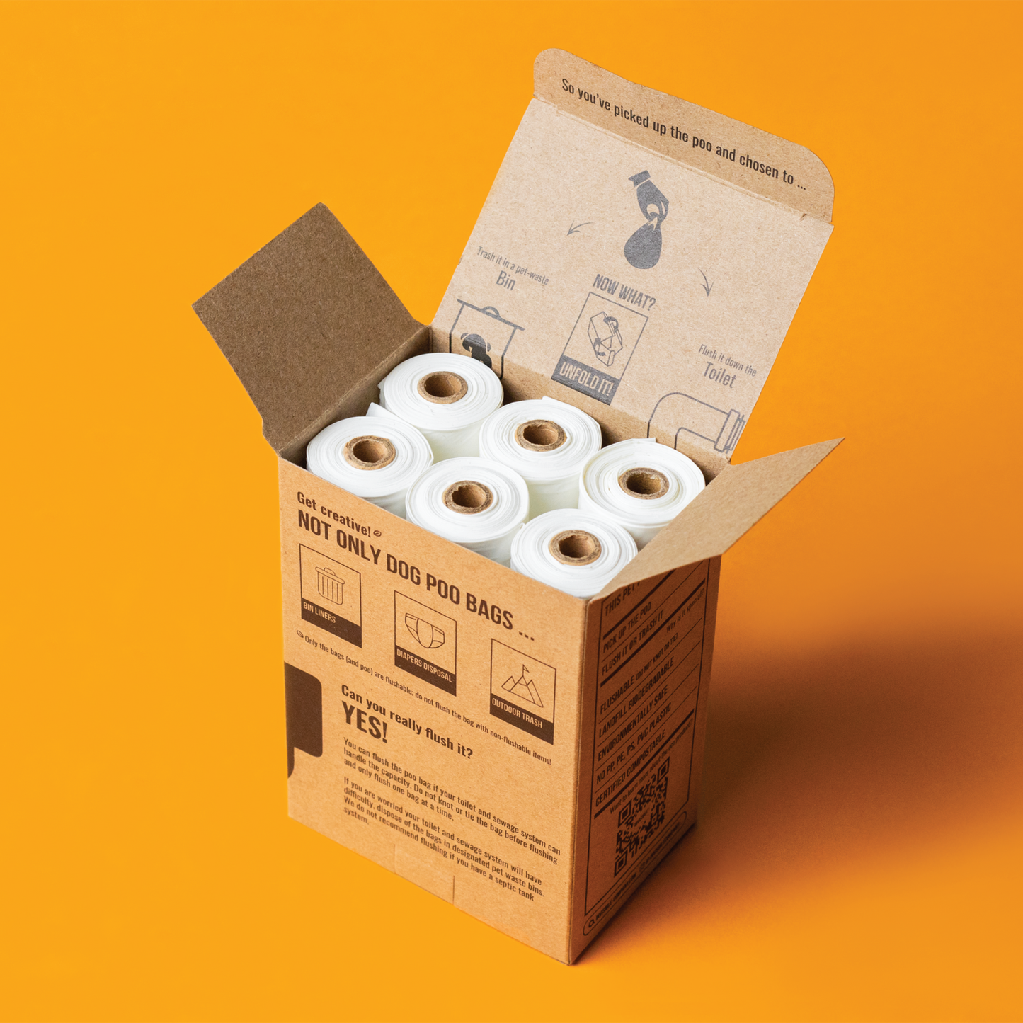 #INVISIBLEPOOBAG is flushable, compostable, landfill-biodegradable, non-toxic, and leaves no harmful residue on earth. A great alternative for all dog owners to replace conventional plastic dog poop bags. #INVISIBLEPOOBAG is created from a unique, water-soluble blend of PVOH, starch, and glycerin. This core ingredient, PVOH, is a biodegradable polymer with a long history of safe use in products you already trust, including medical capsules, laundry pods, and for medical, embroidery, and garment applications. It is also used in many personal care products such as peel-off face masks, moisturizer creams, mascaras, contact lenses, and lubricants/artificial tears. This is a proven, biodegradable solution that disappears completely, leaving no harmful microplastics behind.