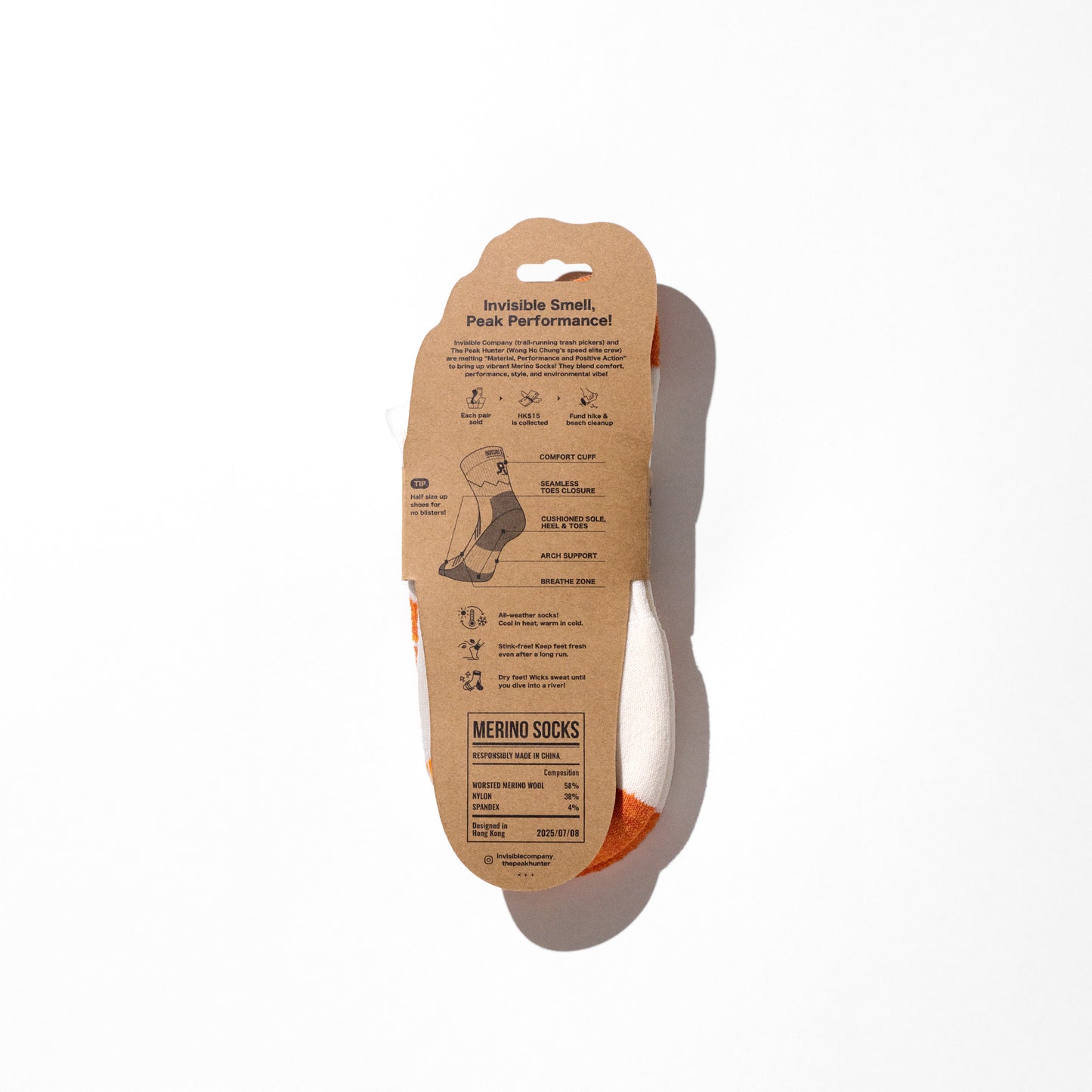 為您隆重介紹這款由 Invisible 與 The Peak Hunter (由香港頂尖越野跑手黃浩聰創立)共同打造的美麗諾羊毛越野跑襪。經過幾百公里、多日比賽實測,穿著不清洗,真正做到零異味,並獲得跑手一致認可。